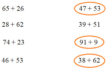 65 + 26 = 91                     47 + 53 = 100