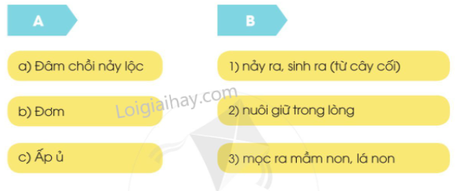 Em đọc các từ ngữ trong các ô và nối từ ngữ ở cột A với nghĩa ở cột B cho phù hợp.