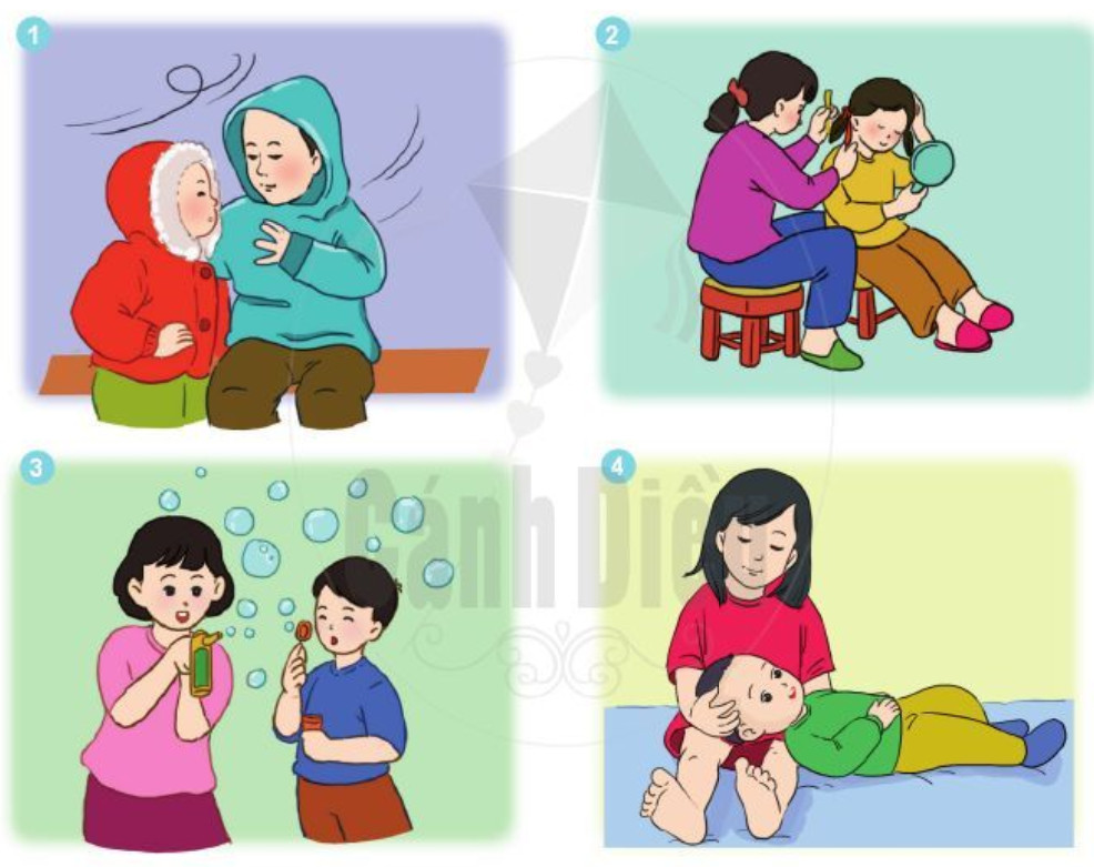 – Tranh 3: Hai chị em chơi thổi bong bóng