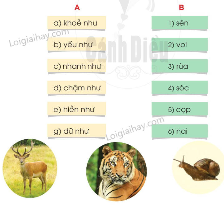 Em đọc kĩ các từ ngữ ở cột A và cột B và dựa vào đặc điểm của các con vật để nối câu phù hợp.