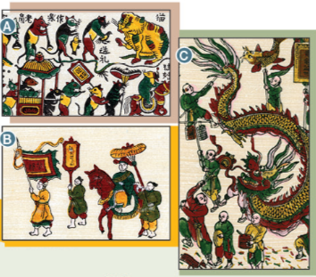 In the 16th century, artists in a small village called Đông Hồ in northern Vietnam started creating a special style of painting. The paintings showed the beautiful countryside, traditional customs, local stories and festivals. The highly-skilled artists used woodblocks with different bright colours to create paintings on a special type of paper-giấy điệp, which is made from the bark of tree, powder of seashells and rice. They also used materials from nature such as trees, flowers and leaves to create the colours of the paint. Over time, the Vietnamese people bought the Đông Hồ paintings to celebrate the Lunar New Year. For good luck in the new year, they bought new Đông Hồ paintings to replace the old ones that decorated their house from the previous year. These paintings have become an important part of Vietnamese folk culture.