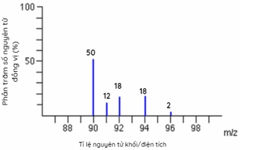 Câu 10: Cho phổ khối của nguyên tố A được biểu diễn tại hình bên dưới. Nguyên tử khối trung bình của A là