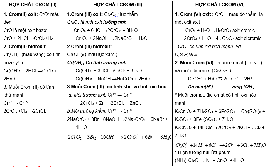 HỢP CHẤT CỦA CROM