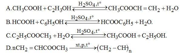 C sai: ancol tác dụng với axit cacboxylic thì được sản phẩm chứa chức este, có thể vẫn còn nhóm chức –COOH hoặc –OH chưa phản ứng.