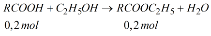 \(\eqalign{ & {\overline M _{axit}} = {{46 + 60} \over 2} = 53\left( {g/mol} \right)\cr& \to {n_{axit}} = {{10,6} \over {53}} = 0,2\left( {mol} \right)  \cr} \)