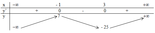 Câu 10. Giá trị cực tiểu của hàm số \(y = {x^3} – 3{x^2} – 9x + 2\) là: