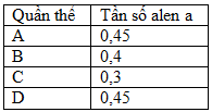 Câu 3 Trong các quần thể sau đây, quần thể nào có tần số alen a thấp nhất?