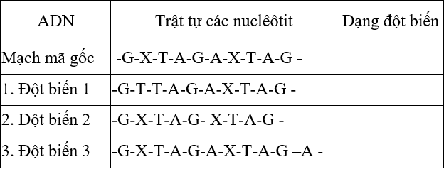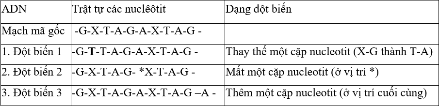 Câu 1. Các đột biến sau đây thuộc dạng đột biến nào ?