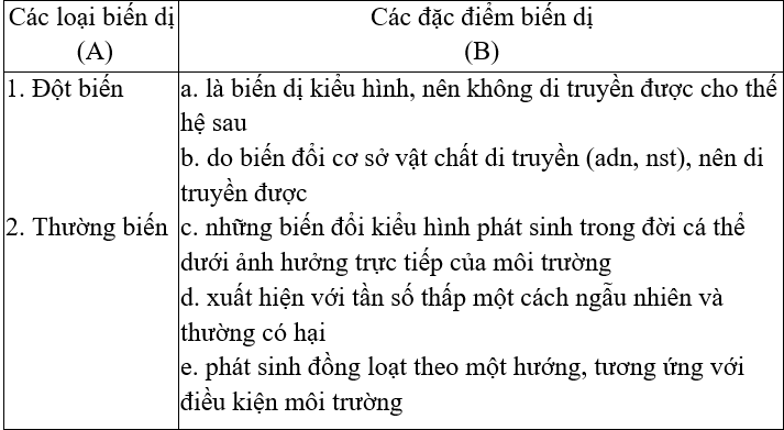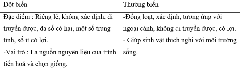 Câu 4. Đột biến và thường biến khác nhau như thế nào ?