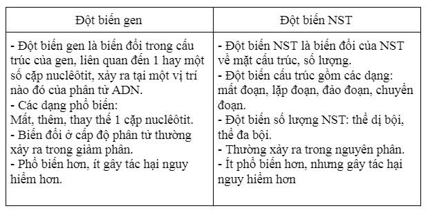 Câu 3. Đột biến gen và đột biến NST khác nhau như thế nào ?