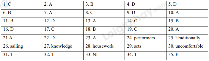 Unlike most teenagers who live in flats or houses, Sophia’s home is a 20-metre boat. She has spent half of her life (26) sailing with her parents, who are both marine scientists. Sophia’s unusual way of life means she regularly sees whales and gets to swim with dolphins. She also has friends in different countries. She does her schoolwork online and her studies are going well. She can speak four languages and has been to many countries, so her (27) knowledge of the world is greater than most children her age. Every day after studying, she helps do the (28) housework. She feels she has a duty to help her parents. She believes family life is more pleasant when everyone shares the household chores. She often cleans the floors, (29) sets the table for meals and does the washing-up. She also cooks dinner, especially when her parents are too busy. Life on board is sometimes (30) uncomfortable. Space is limited, so there are no wide-screen TVs or soft sofas. Bad weather can last for days, especially in winter. Storms at sea can be frightening. However, Sophia loves her boat and she feels safe on it.