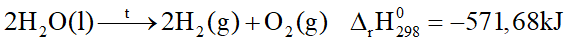 Phản ứng giữa 2 mol khí hydrogen và 1 mol khí oxygen tạo thành 2 mol H2O lỏng, giải phóng nhiệt lượng 571,68 kJ. Phương trình nhiệt hóa học được biểu diễn là