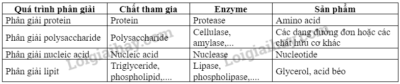 Vi sinh vật có khả năng tổng hợp enzyme phân giải các đại phân tử như protein, polysaccharide, lipit, nucleic acid.