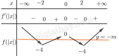 \( \Leftrightarrow y = – m\) cắt đồ thị \(y = f\left( {\left| x \right|} \right)\) tại 4 điểm phân biệt.