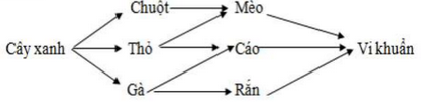 b. Có 3 loài thuộc sinh vật tiêu thụ bậc 1 là: Chuột, thỏ, gà.