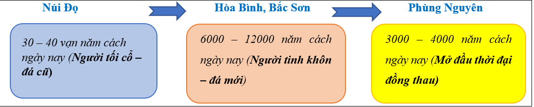 Các nền văn hóa đi liền với các giai đoạn phát triển chính của thời nguyên thủy trên đất nước ta là: