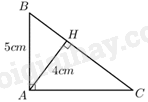 Câu 5: Cho tam giác ABC vuông tại A, đường cao AH (\(H \in BC\)). Biết độ dài đoạn \(AB = 5cm\) và \(AH = 4cm.\) Tính độ dài đoạn BH và diện tích tam giác ABC.