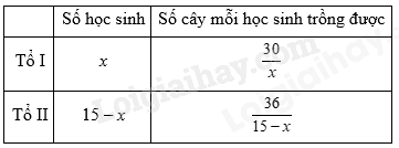 Mỗi học sinh tổ II trồng được \(\frac{{36}}{{15 – x}}\) (cây)