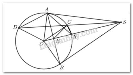 Bài 5. Từ điểm \(S\) nằm ngoài đường tròn tâm \(O\), vẽ hai tiếp tuyến \(SA,SB\) với đường tròn (\(A,B\) là các tiếp điểm) và cát tuyến \(SCD\) không đi qua \(O(C\) nằm giữa \(S\) và \(D)\). Gọi \(K\) là giao điểm của \(SO\) với cung nhỏ \(AB\) và \(H\) là giao điểm của \(SO\) với đoạn thẳng \(AB\). Chứng minh: