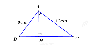 \(\begin{array}{l}\,\,\,\,\,AH.BC = AB.AC\\ \Rightarrow AH = \dfrac{{AB.AC}}{{BC}}\\ \Rightarrow AH = \dfrac{{9.12}}{{15}} = 7,2\,\,\left( {cm} \right)\end{array}\)