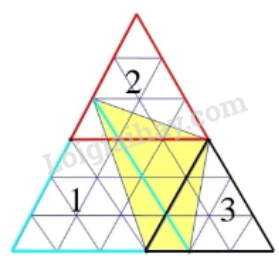 Ta thấy hình số 1 bao gồm 9 tam giác nhỏ và 1 phần tam giác bằng 1 nửa hình được tạo bởi 6 tam giác nhỏ nên diện tích là: