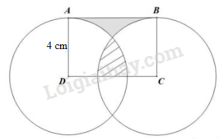 Câu 8. Hình chữ nhật ABCD có cạnh AD bằng 4 cm. Hình tròn tâm D, bán kính DA và hình tròn tâm C , bán kính CB có vị trí như hình bên. Hãy tính độ dài cạnh CD biết diện tích phần tô đậm bằng diện tích phần gạch chéo.
