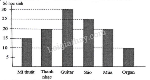 Câu 4. Biểu đồ cột dưới đây cho biết số lượng học sinh khối 6 tham gia câu lạc bộ nghệ thuật trong hè 2023 của trường THCS và THPT Nguyễn Tất Thành.