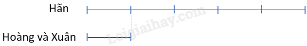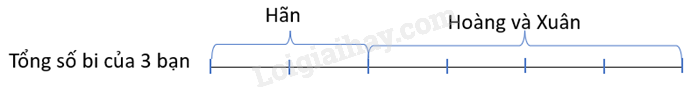 Vậy ban đầu, số bi của Hãn chiếm 2 phần, tổng số bi của Hoàng và Xuân sẽ chiếm 4 phần.