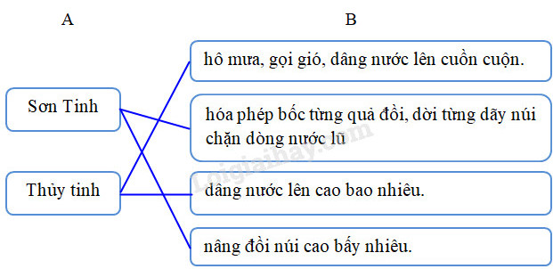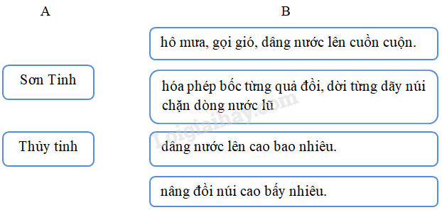 b. Nối tên nhân vật ở cột A với hành động ở cột B để thấy rõ cuộc chiến đấu của hai vị thần: