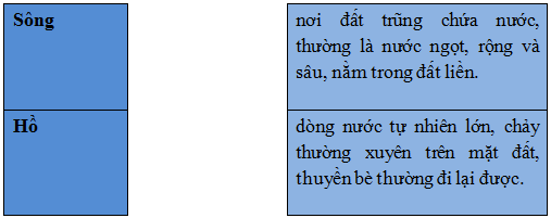 Sắp xếp các từ ngữ dưới đây vào ô thích hợp trong bảng: