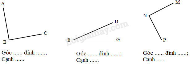 b) Viết tiếp vào chỗ chấm tên đỉnh và cạnh của: