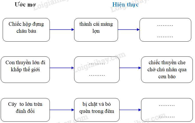 a) Hoàn thành sơ đồ về cuộc đời của ba cây cổ thụ bằng cách điền từ thích hợp vào chỗ trống.