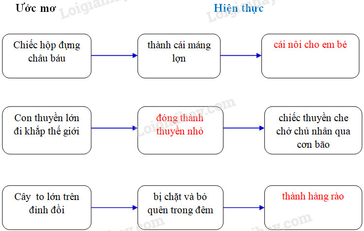 Ở một khu rừng nọ có ba cây cổ thụ đang bàn về tương lai. Cây thứ nhất nói: “Tôi muốn được trở thành chiếc hộp đựng châu báu với hình dáng lộng lẫy”. Cây thứ hai nói: “Tôi muốn trở thành con thuyền to lớn và đi khắp thế giới”. Cây thứ ba nói: “Tôi muốn trở thành cây to lớn nhất trong khu rừng này. Mọi người nhìn lên đồi sẽ thấy tôi vươn xa, chạm đến bầu trời”.