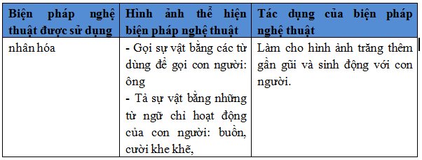 Đọc đoạn thơ và điền vào bảng: