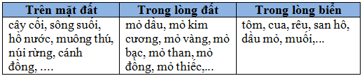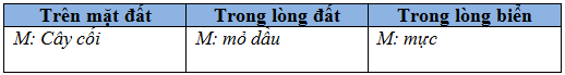 Kể tên những sự vật thiên nhiên vào bảng sau: