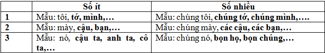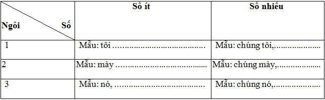 Điền tiếp các đại từ xưng hô thích hợp vào chỗ trống trong bảng phân loại sau: