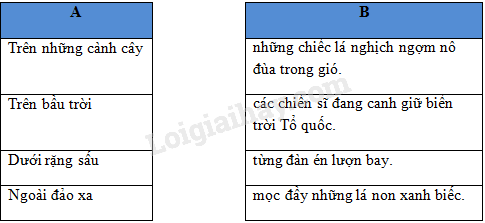 Ghép trạng ngữ ở cột A với chủ ngữ, vị ngữ thích hợp ở cột B để tạo thành câu.