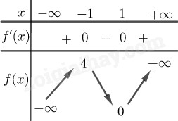 Từ bảng biến thiên ta có hàm số đồng biến trên \(\left( { – \infty ; – 1} \right)\) và \(\left( {1; + \infty } \right)\), nghịch biến trên \(\left( { – 1;1} \right)\).