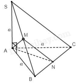 \(\begin{array}{l}\dfrac{{MN}}{{SC}} = \dfrac{1}{2} \Rightarrow \dfrac{{{S_{MBN}}}}{{{S_{SBC}}}} = \dfrac{1}{4}\\ \Rightarrow \dfrac{{{S_{SMNC}}}}{{{S_{SBC}}}} = \dfrac{3}{4}\\ \Rightarrow {V_{A.SMNC}} = \dfrac{3}{4}{V_{S.ABC}} = \dfrac{3}{4}.\dfrac{{{a^3}}}{6} = \dfrac{{{a^3}}}{8}\end{array}\)