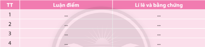 – Đánh dấu những luận điểm, lí lẽ và bằng chứng tương ứng.