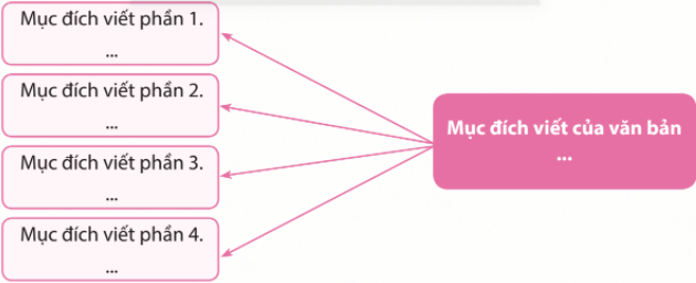 Hãy chỉ ra mục đích viết của từng phần và mục đích viết của văn bản theo sơ đồ sau (làm vào vở):