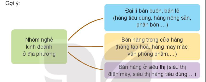 Em dựa vào gợi ý và tìm hiểu về  các ngành nghề ở địa phương.
