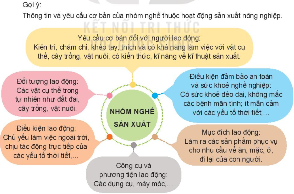 Gợi ý: Thông tin và yêu cầu cơ bản của từng nhóm nghề thuộc hoạt động sản xuất nông nghiệp.