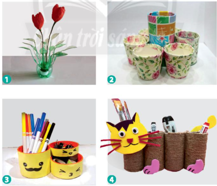 1. Khám phá sản phẩm từ các vật liệu đã qua sử dụng – trang 59 – SGK Mĩ thuật 6