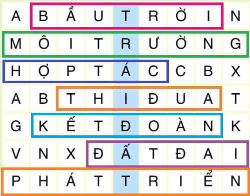 Em quan sát ô chữ để tìm các từ có nghĩa trong ô chữ.