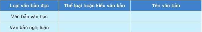 Hãy kẻ bảng hoặc vẽ sơ đồ về các bài đọc hiểu theo thể loại và kiểu văn bản đã học trong sách Ngữ văn 10, tập hai. Tham khảo và hoàn thành bảng sau: