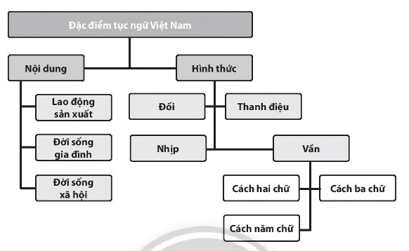 Xác định vấn đề được tác giả trình bày trong văn bản trên. Theo bạn, vấn đề đó liên quan đến phạm vi đối tượng nào dưới đây? Tục ngữ Việt Nam được tác giả tìm hiểu từ những phương diện nào? Mỗi phương diện ấy lại được xem xét từ các yếu tố nào? Hãy tóm tắt nội dung bài viết bằng một sơ đồ.