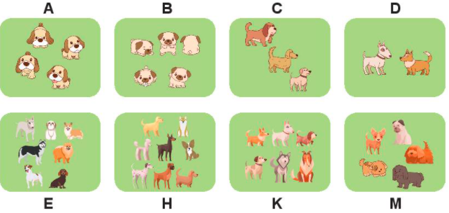 Hình C và hình E có tổng số con chó là 10.ssssssssss