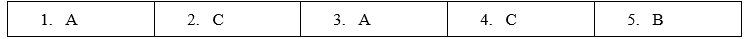 (Bạn sẽ nghe năm đoạn hội thoại ngắn. Bạn sẽ nghe mỗi cuộc trò chuyện hai lần. Có một câu hỏi cho mỗi cuộc trò chuyện. Với mỗi câu hỏi, hãy chọn câu trả lời đúng (A, B hoặc C).)