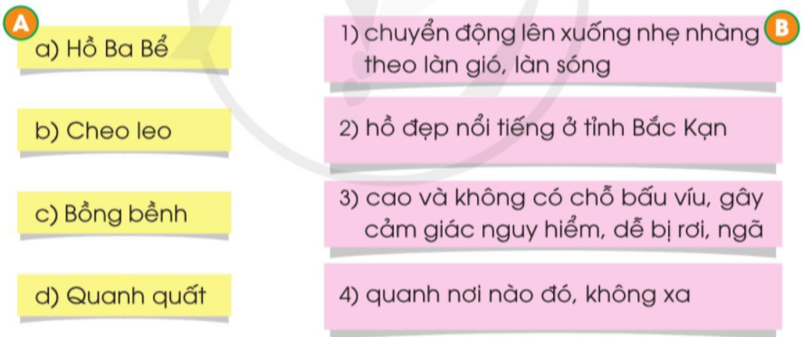 – Ghép từ ngữ ở bên A với nghĩa phù hợp ở bên B: